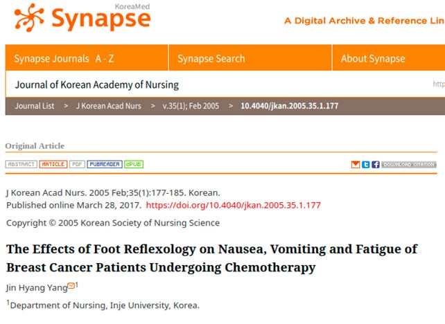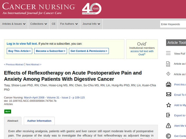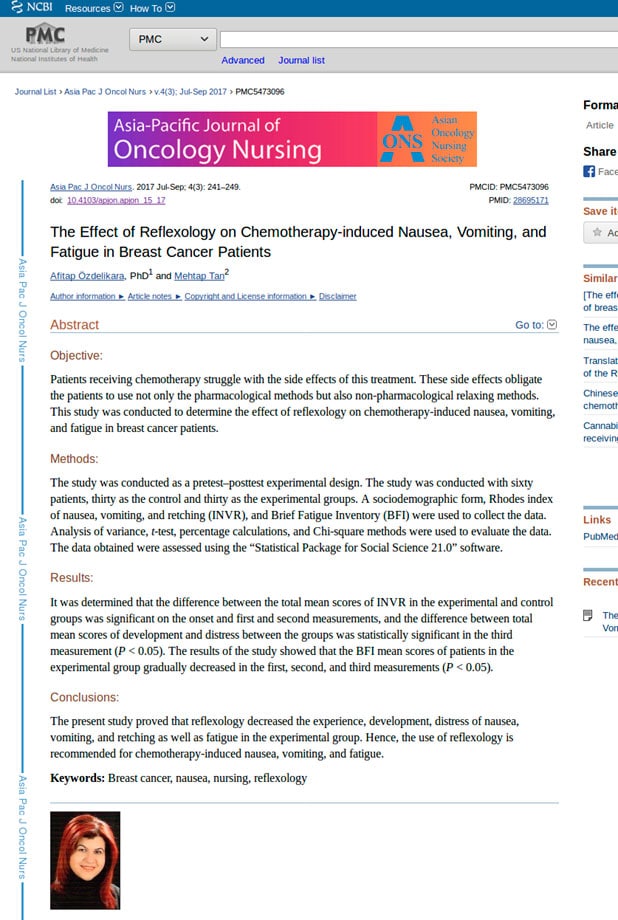 Veja apenas alguns dos muitos estudos realizados no mundo inteiro sobre a ação da Reflexologia em pacientes com câncer: